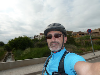 Seguí 8 Km más, hasta finalizar la zona señalizada, en Villamarchante, donde el camino acaba abruptamente con un cartelito y un centro de visitantes cerrado. Foto.... y zumbando a almorzar. Llevaba 35 Km y una hora y media. Me imagino que esta distancia para las "máquinas" tipo mi cuñao, el triatleta total, serán totalmente ridículas, pero yo tengo que decir, que a estas alturas estaba encantado con mi rendimiento.