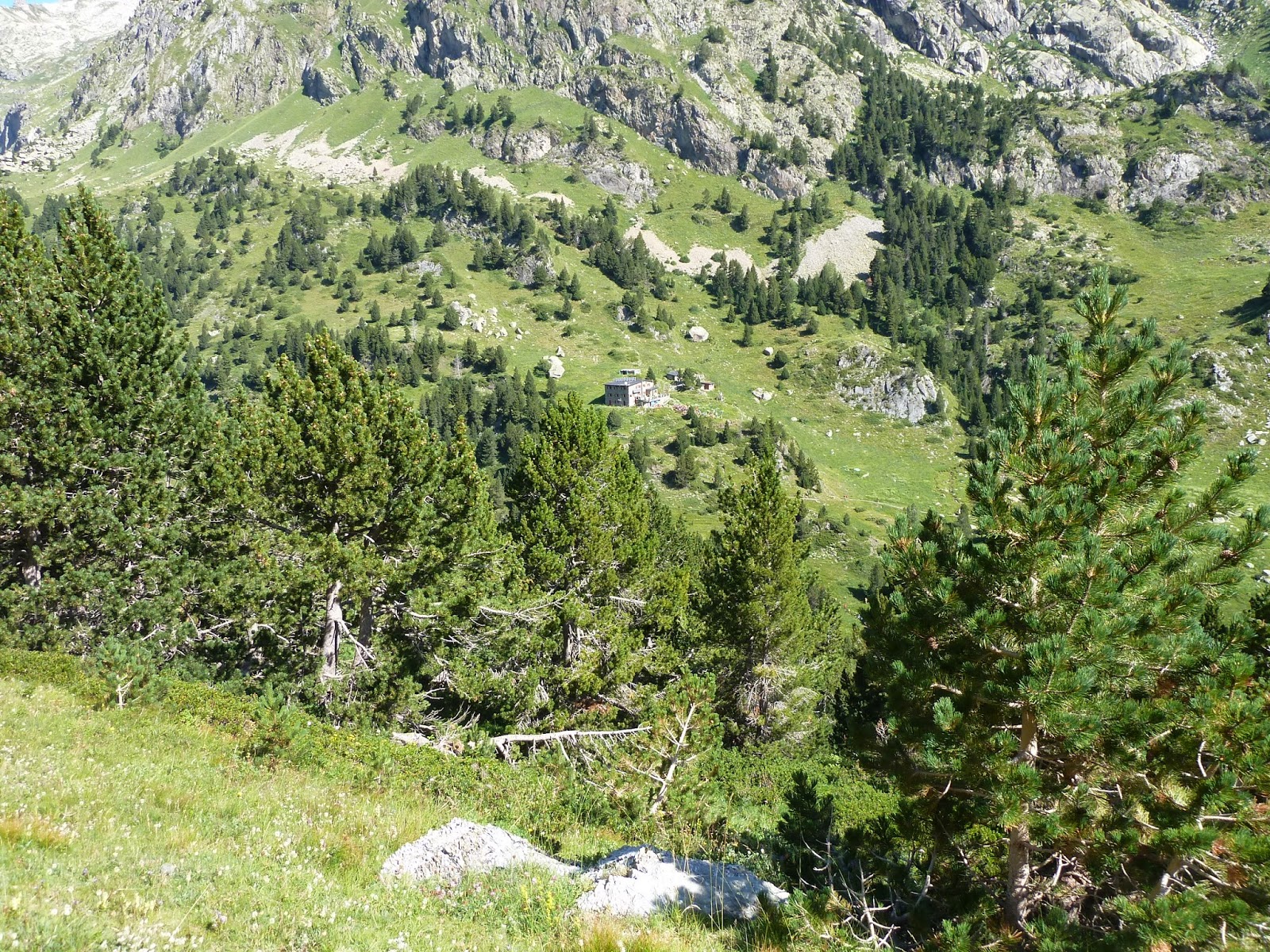 Km 10. Cabaña del Turmo. Desnivel acumulado 670 mts. Voy bien, muy bien. Hace calor y bebo bastante. Sudo como una mala bestia pero todo es felicidad, prados, flores y alegría. Soy el Forrest Gump del Pirineo...