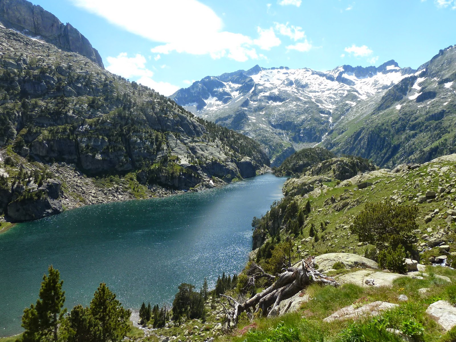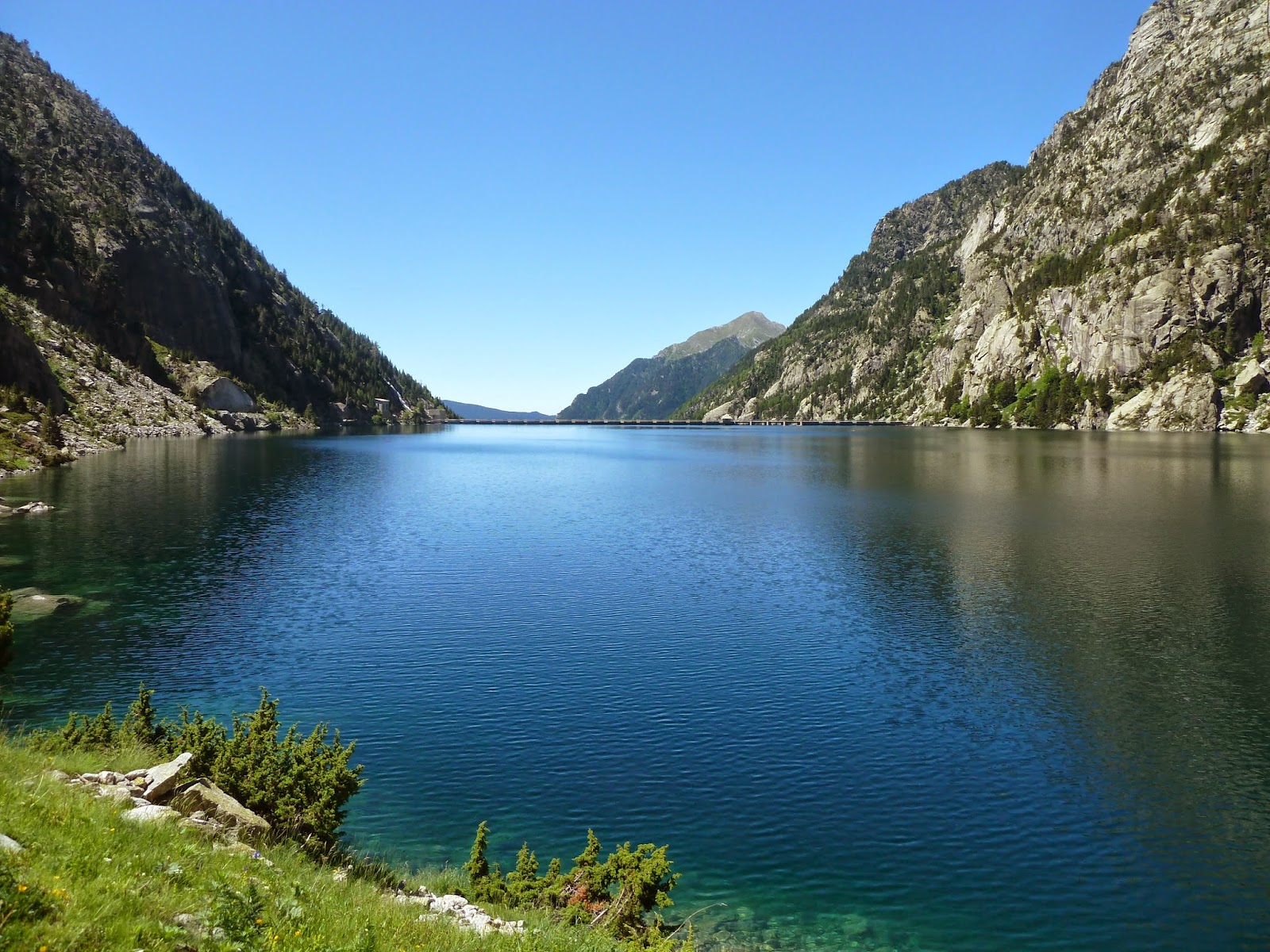 Nos acercamos al Embalse dels Cavallers por la carretera L-500 que discurre por todo el valle de Boí pasando junto al balneario de Caldes. Sólo las vistas desde el embalse ya merecen la pena.