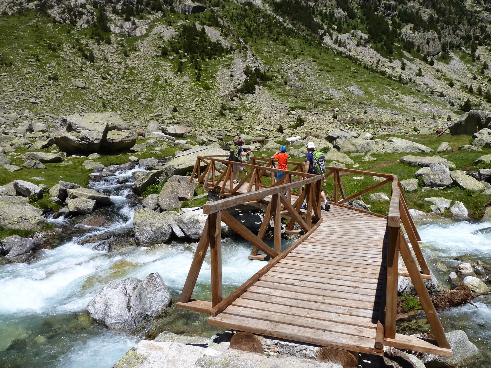 Llegamos a un primer rellano con vacas. Es la Pleta del río Malo, a 1.820 mts, donde ya encontramos desvío hacia los Besiberri.